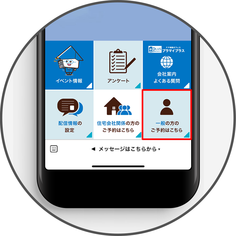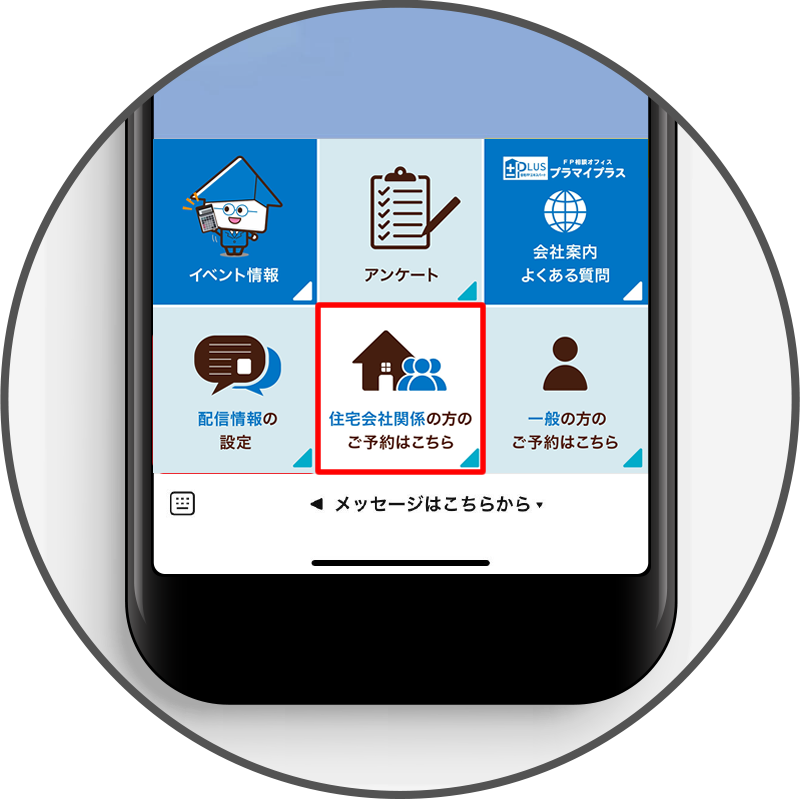 こちら「住宅会社関係の方のご予約はこちら」をボタンをタップしてください。